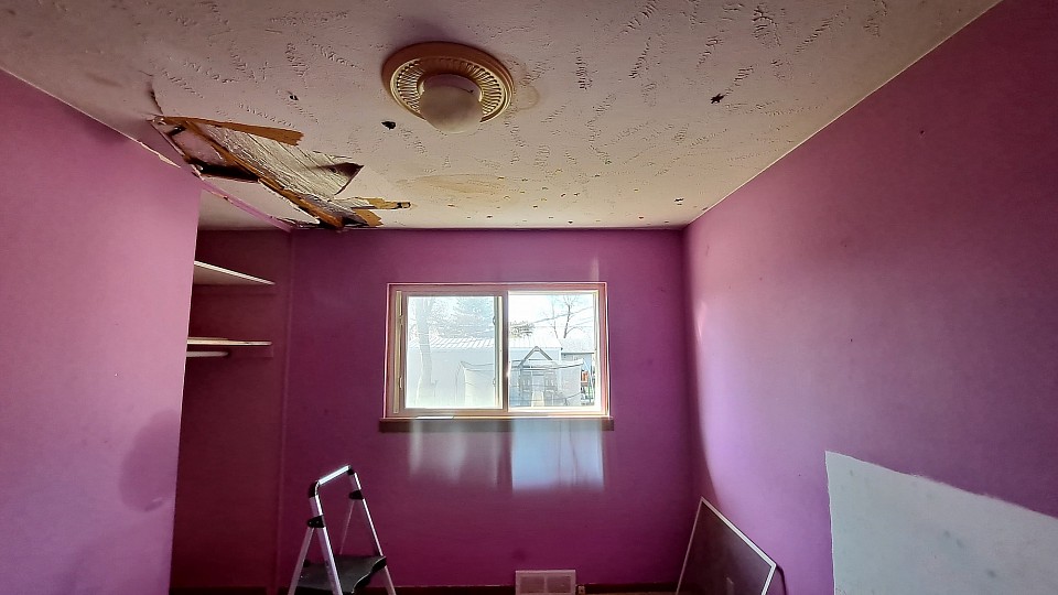 After high winds put a tree limb into the customer's roof into her daughter's bedroom she decided to turn it into an office.