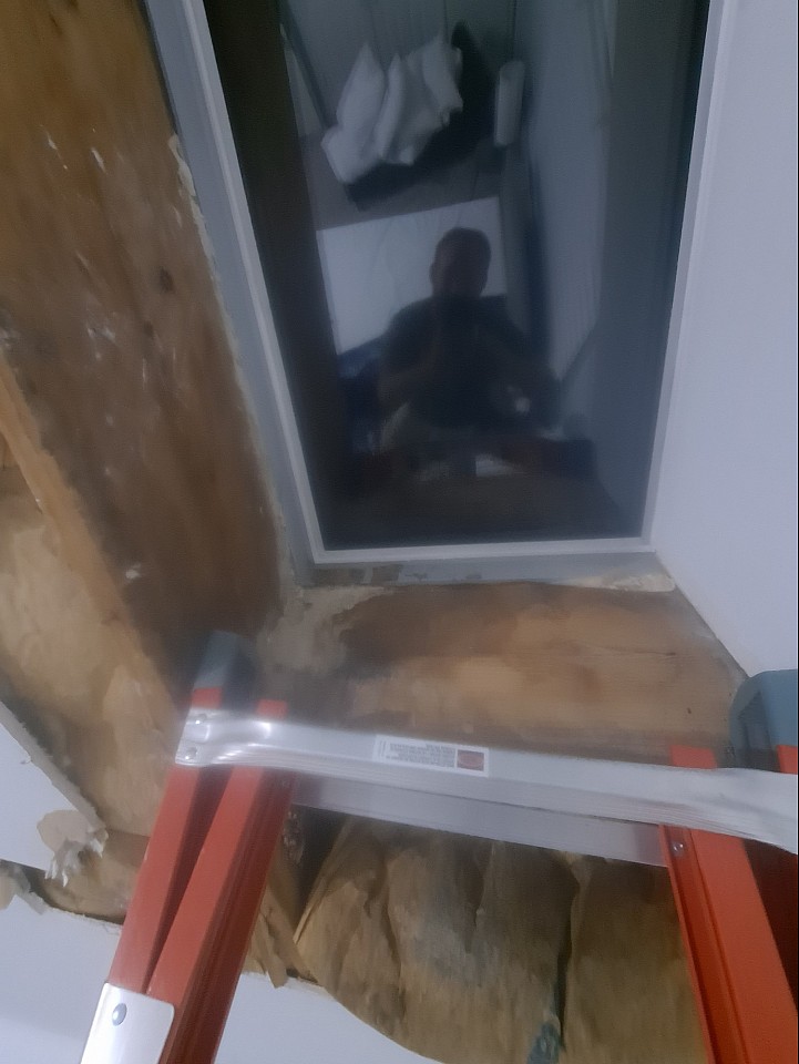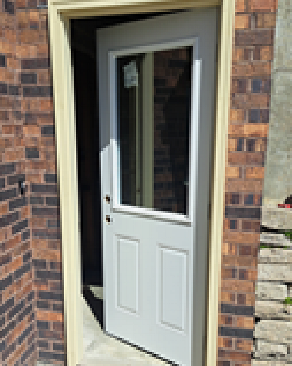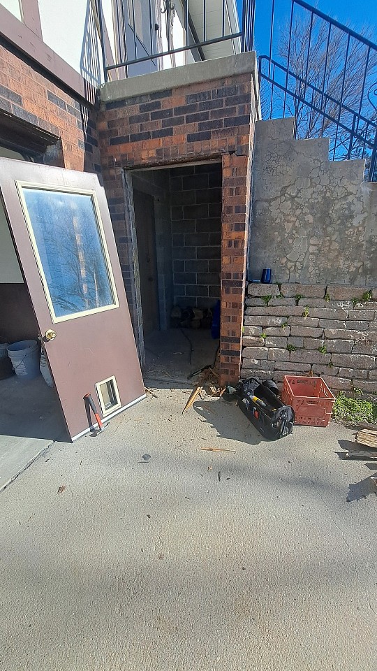 The frame of this door was all rotten and letting the snow blow in around the door. Took the old one out cleaned up the surface and sealed a new one in tight.